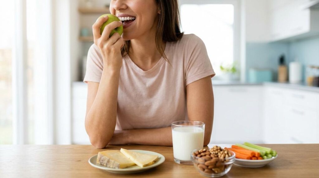 Si necesitas picar algo, opta por alimentos que no fermenten fácilmente en la boca. Un trozo de queso curado, un puñado de nueces crudas o bastones de zanahoria son opciones excelentes que sacian el apetito sin disparar el riesgo de caries, a diferencia de las patatas fritas o las galletas.